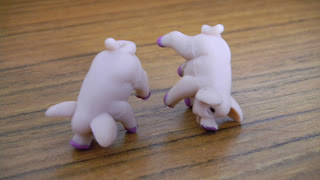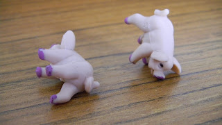 Pass the Pigs. For once I am not talking about bacon. It's a game that the punks got from Grandma and Grandpa and it's just oodles of fun. It's like dice, but instead the die are pigs. Here's how you score: You toss two pigs and you get points based on how they land. You can roll as many times as you like, accumulating points, but risking to loose them all if you get Pig Out (pigs lying down on opposite sides).